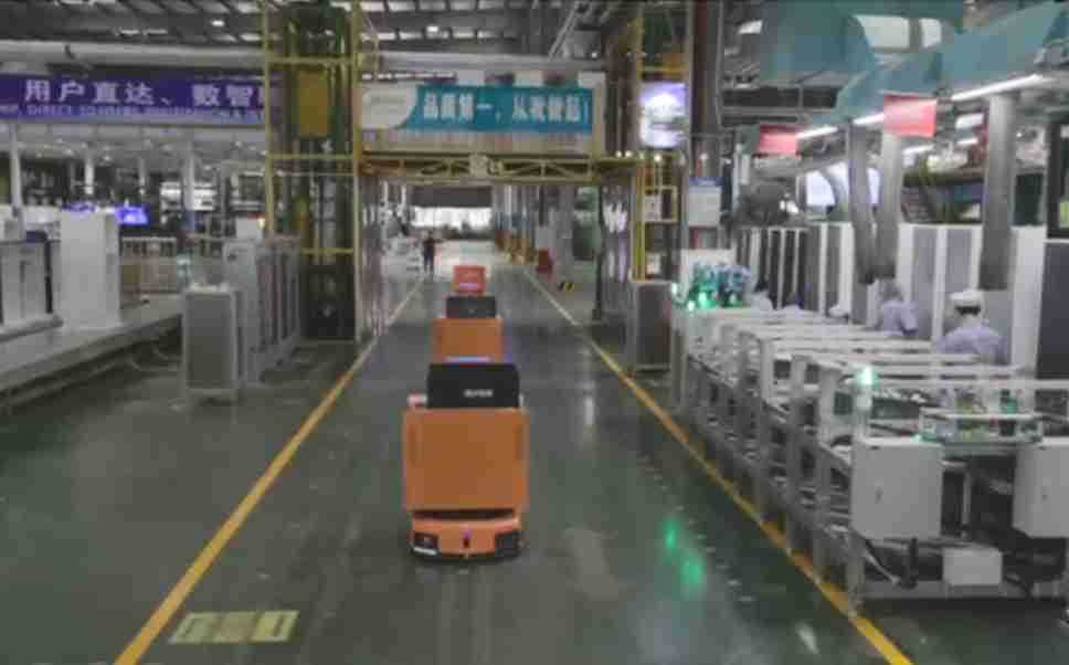 为车载冰箱物流配送打造的智能解决方案,,,,包含产中物流通过潜伏举升AMR搬运至线边,,产后成品物流智能仓储,,,流程包含产中物流智能齐套入库,,,,线边安灯叫料AMR智能配送至线边,,,,成品入库、、、、出库,,,通过无人堆高车机器人,,,,智能仓储管理替代人工作业管理,,,实现更高存储、、更高效率、、、更具柔性化的解决方案。。。。